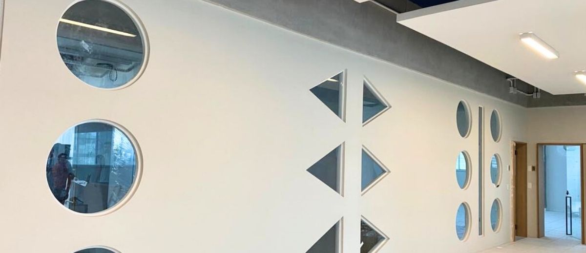 O sistema de construção a seco é estruturado em perfis, com opção de tratamento acústico em lã de pet, lã de vidro ou lã de rocha e placas de gesso acartonado, fixados em estruturas de aço galvanizado para construção de casas, salas e até mesmo prédios. Construções em drywall são muito mais leves, econômicas e mais rápidas do que as construções de alvenaria. Na arquitetura, o drywall pode ser utilizado como um recurso de design para criar paredes e tetos personalizados. Sendo rápida instalação e modificação. Diversidade em layout e aplicação, o forro em drywall é indicado para todas as especificações de forros. A opção em placas leves, resistentes a fogo ou à umidade e também tratamento termo acústico, são opcionais, permitindo também aplicações de tintas e texturas diversas, ampliando as opções mais variadas em seu acabamento.