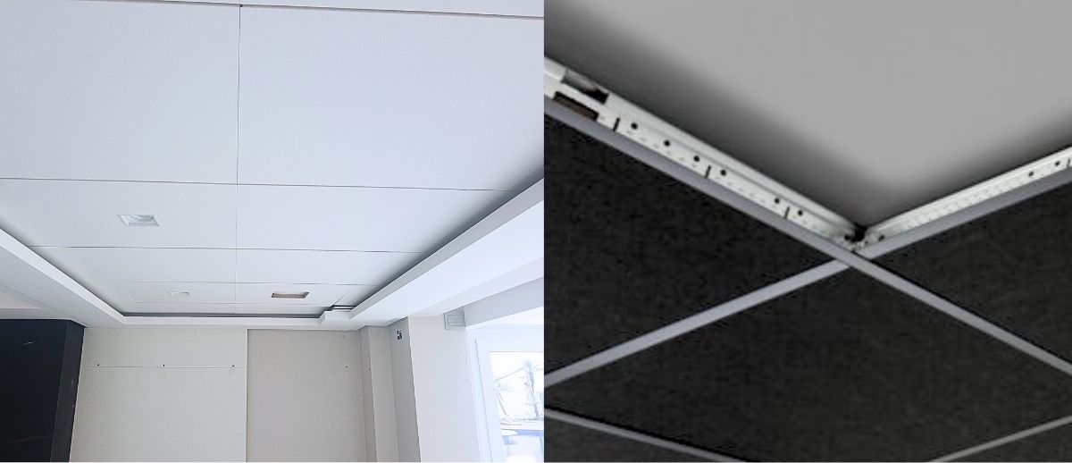 Forro acústico em lã de rocha, lã de vidro, lã de PET e nuvem acústica dentre outros.